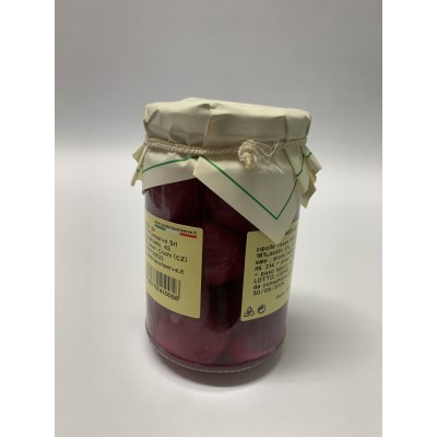Cipolle rosse 60%, acqua 18%, aceto 9%, zucchero 7%, sale, aromi naturali